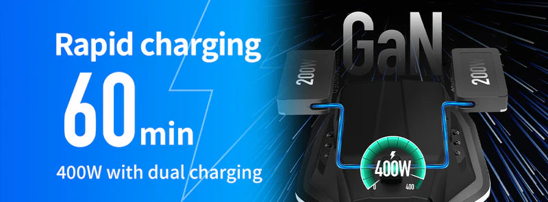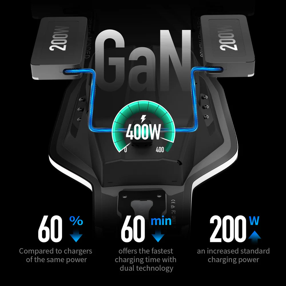compact yet powerful. With 400W dual charging technology, charging can be as fast as 1 hour.