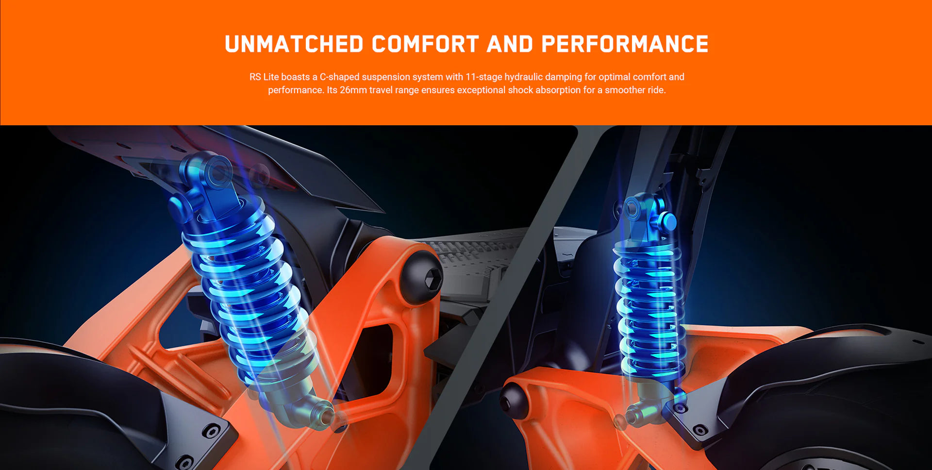 Inspired by SUV design, RS Lite features a world-first transforming systemwith 4 pedal settings for shock absorption tailored to all terrain requirements.