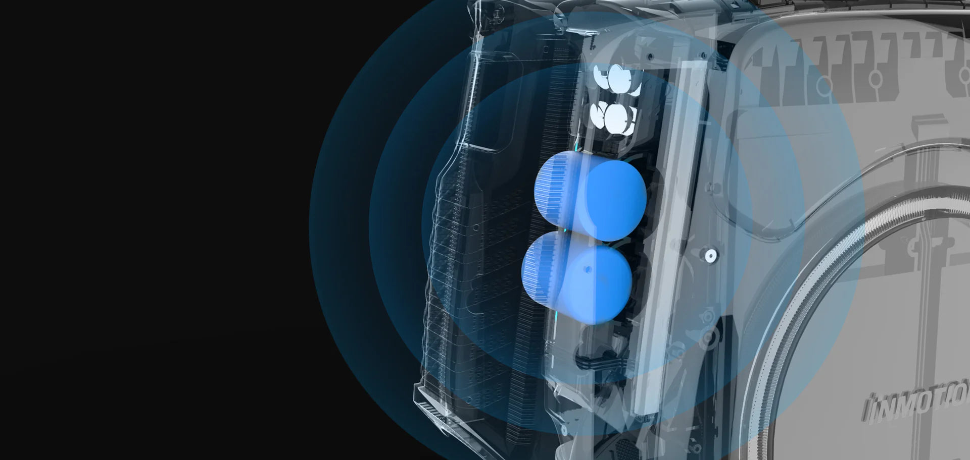 Three built-in BMS dominates the management of the two batteries embedded to the INMOTION app.All error messages will be stored and displayed on the app