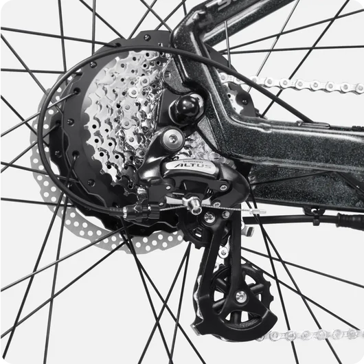 - MTB-grade derailleur,Shimano gears and hydraulic disc brakes.Easily upgradeable configuration.